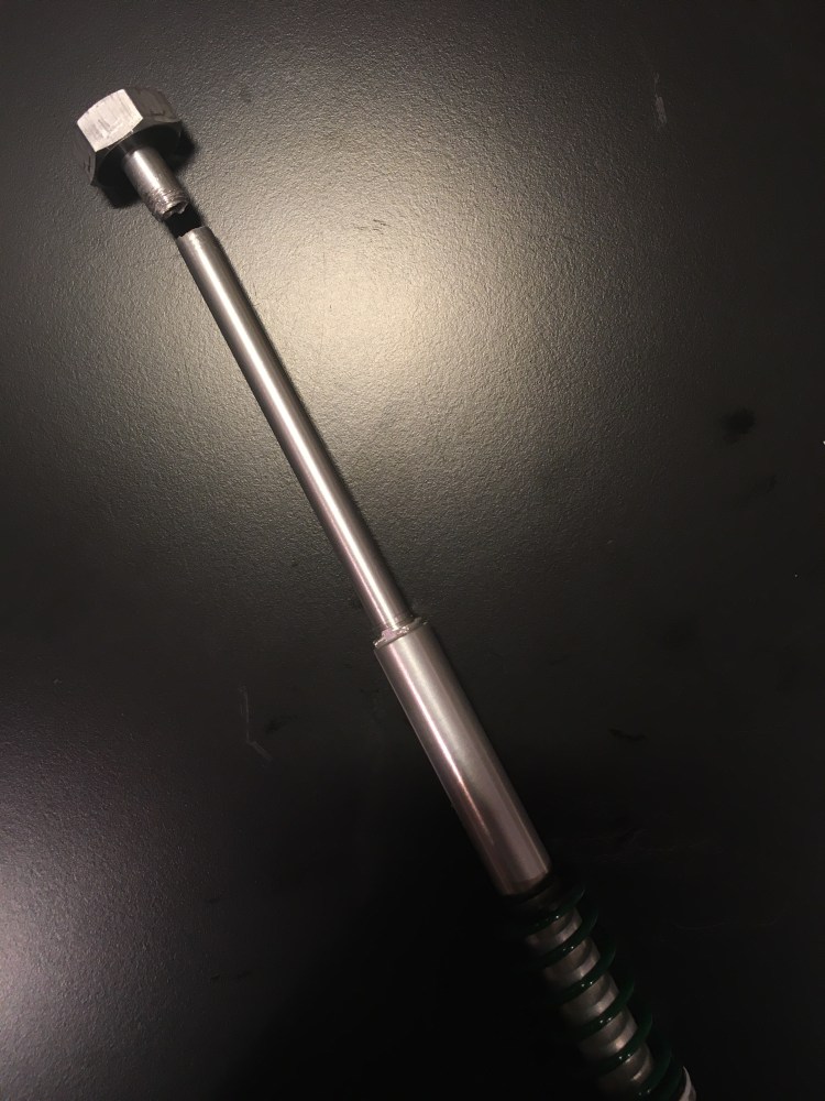 CAUSED BY: Overtightening the air cilinder piston, threaded neck broken at piston connection point